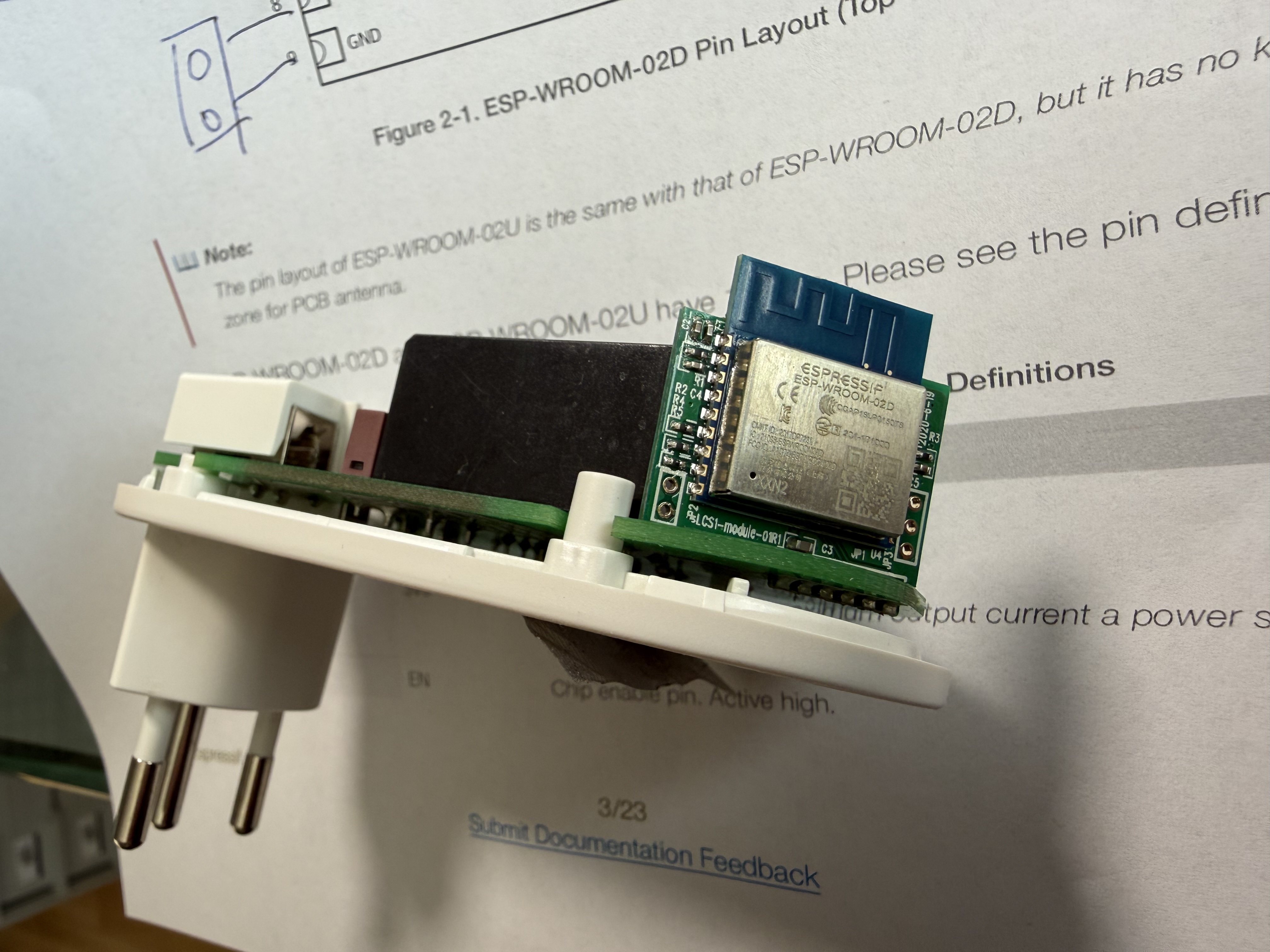 Das neueste Modell ist recht kostengünstig, da es auf Energieverbrauchsmessungen sowie einen Temperatursensor verzichtet. Nur ein Relais, zwei LEDs und ein Druckknopf. Dafür reicht also ein ESP8266 allemal.
